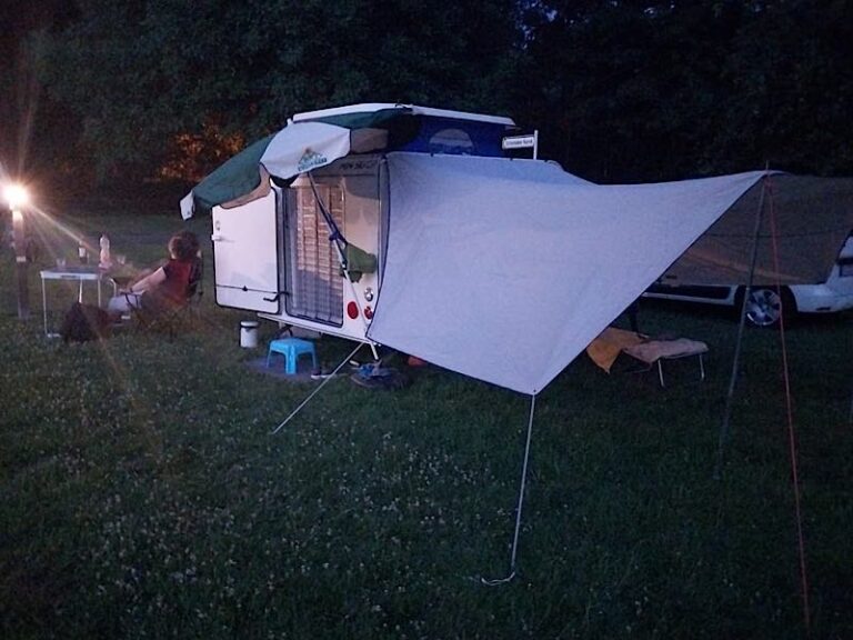 Auf dem zweiten Bild schauen wir gerade den Fledermäusen beim Segeln zu. Am letzten Tag fegt ein Sturmtief über den Platz und baut unser Vorzelt ab. Zum Glück helfen uns alle beim Einsammeln, ich liebe die Camping-Community! – Wie praktisch, dann müssen wir es nicht tun. Am nächsten Tag geht es wieder nach Hause – und die Juni-Hitzewelle ist vorbei.