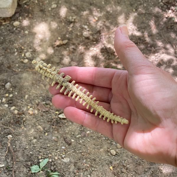- Sensationsfund im Garten: Beim Abbau des alten Sandkastens von „Kind“ finden wir ein Dino-Skelett. Wir hatten damals die Einzelteile verbuddelt, zur Freude des kleinen „Forschers“. Anscheinend wurde der Schwanz des Sauropoden nie gefunden – bis jetzt!